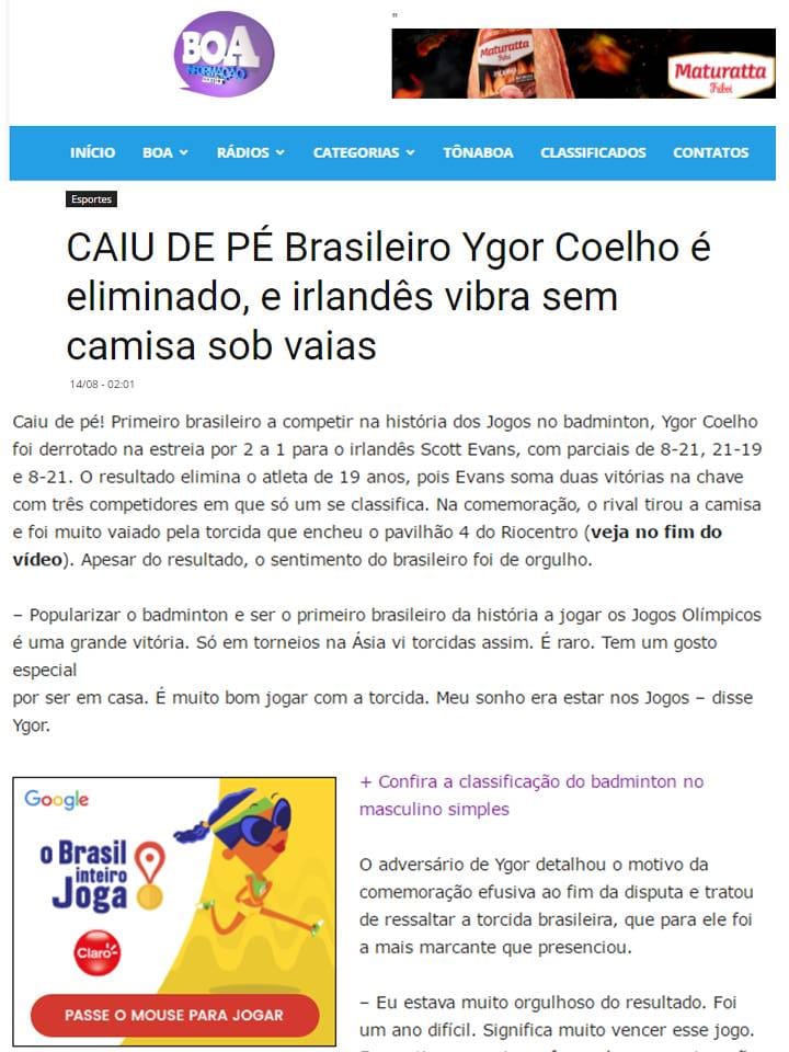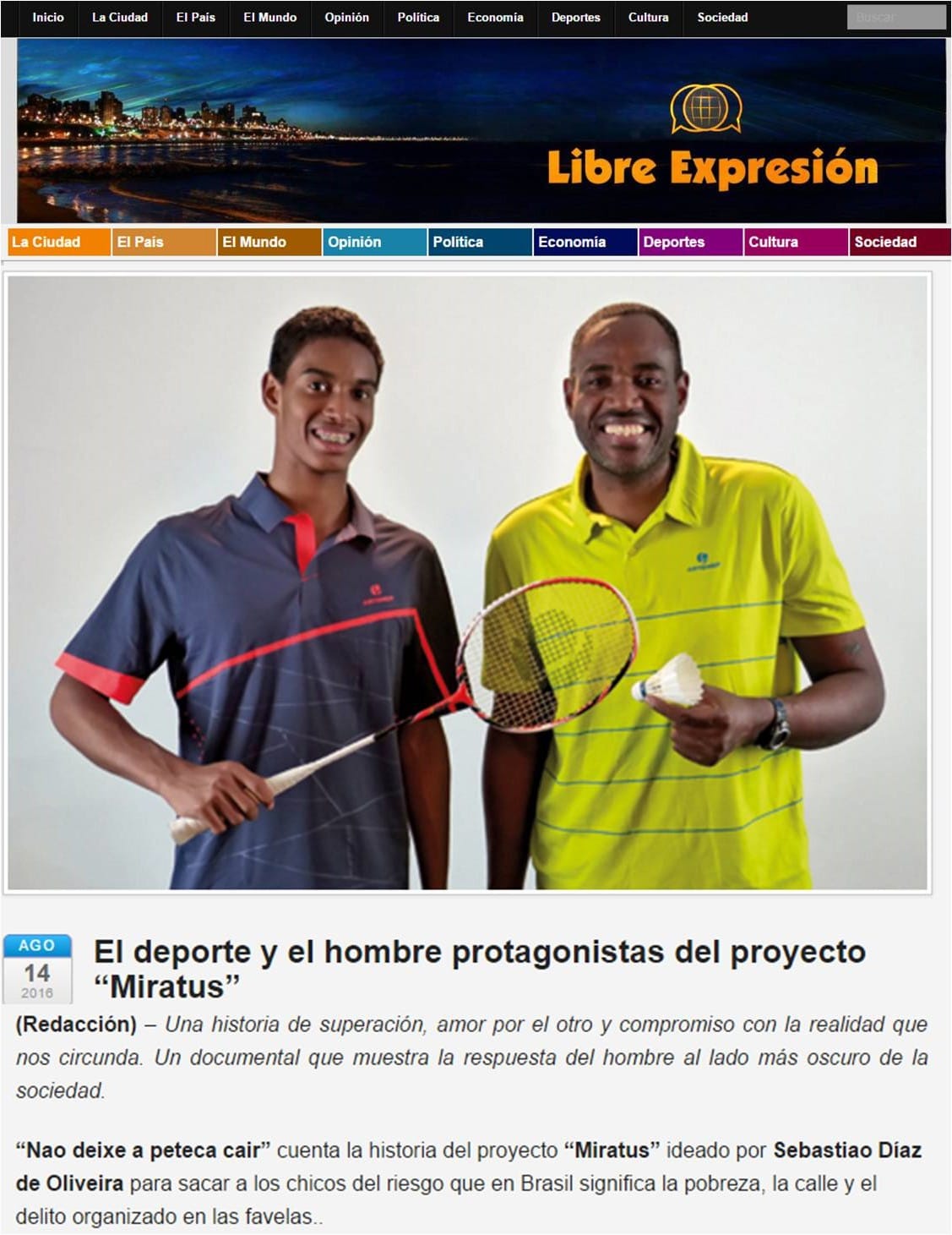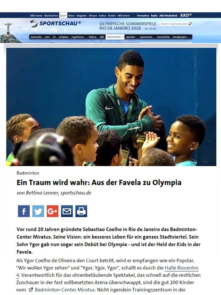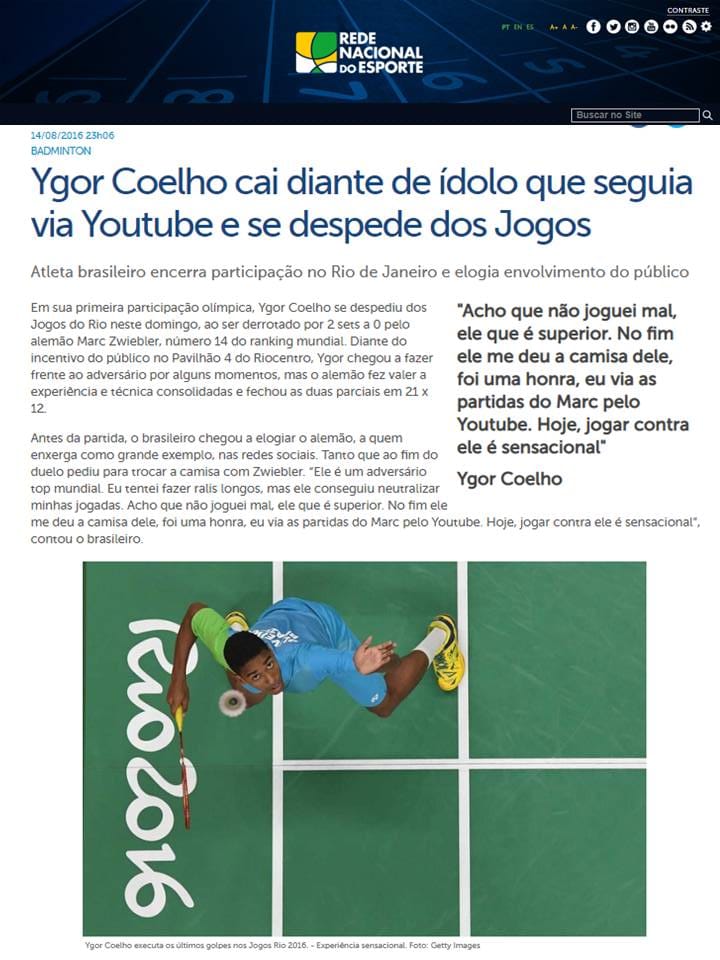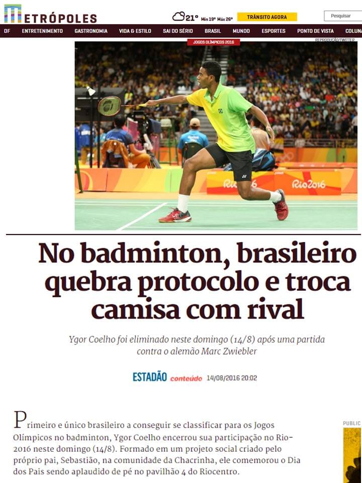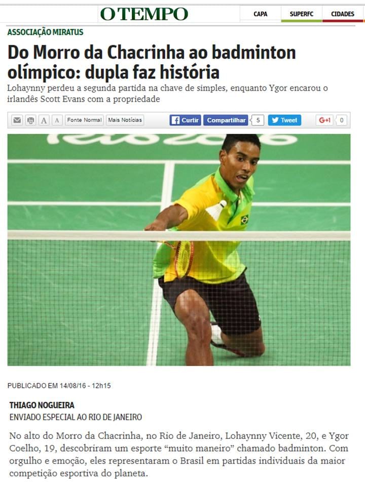 MateriasVeja a seguir matérias publicadas sobre a Associação Miratus e seus atletas. 2016 08 15 Vavel... 2016 08 14 Rede Nacional Esporte... 2016 08 14 Sportschau ARD (DE) 2016 08 14 O Tempo 2016 08 14 O Jogo (PT) 2016 08 14 BWF (EN) 2016 08 14 Metropoles 2016 08 14 Indian Express (EN) 2016 08 14 Globo Esporte 2016 08 14 Extra 2016 08 14 Boa Informação 2016 08 14 Libre Expresion (ES)...Pagination ← 1 … 10 11 12 13 14 … 21 →