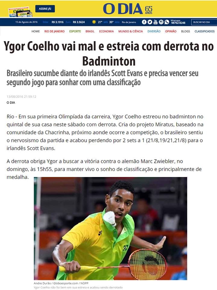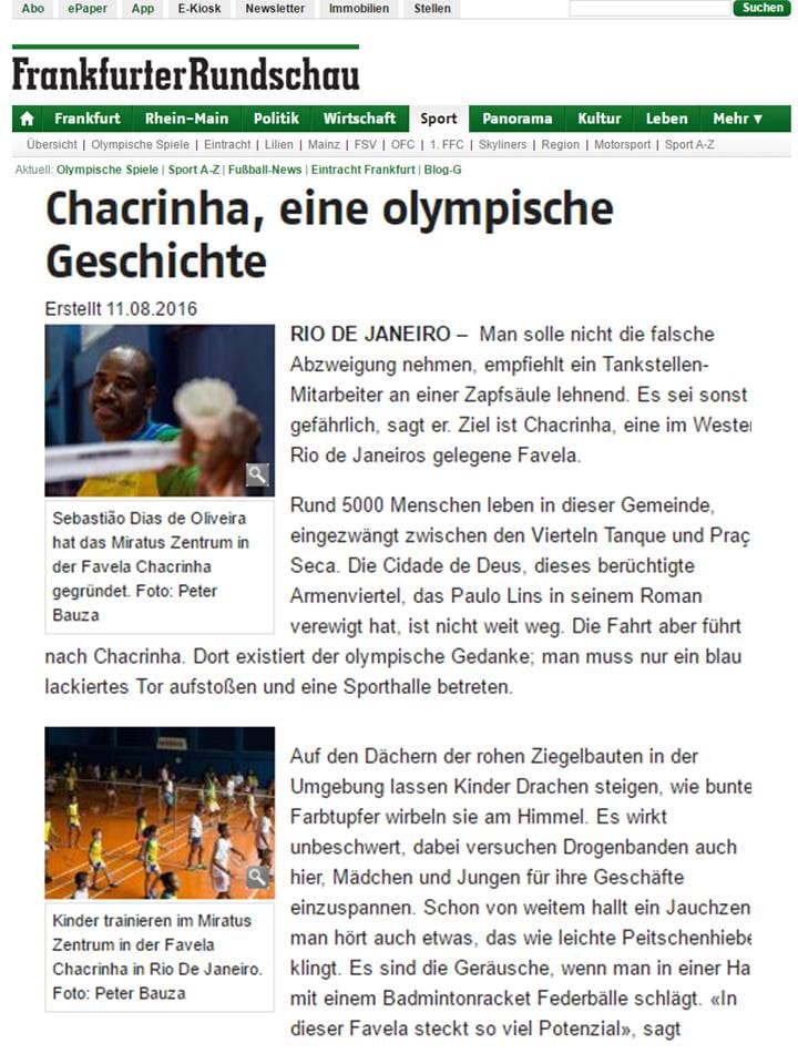MateriasVeja a seguir matérias publicadas sobre a Associação Miratus e seus atletas. 2016 08 14 O Dia 2016 08 13 ZH Olimpiadas... 2016 08 13 Rede Nacional Esporte... 2016 08 13 UOL 2016 08 13 Terra 2016 08 13 O Dia 2016 08 13 The Christian Science Monitor (EN)... 2016 08 12 Yahoo Noticias Espana (ES)... 2016 08 11 Frankfurter Rundschau (DE)... 2016 08 11 Yahoo Sports (EN)... 2016 08 11 Arcor (DE)... 2016 08 11 Istoé...Pagination ← 1 … 11 12 13 14 15 … 21 →