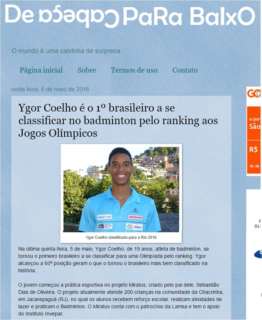MateriasVeja a seguir matérias publicadas sobre a Associação Miratus e seus atletas. 2016 06 21 O Tempo 2016 06 18 Quem... 2016 06 05 De cabeça para baixo... 2016 05 06 Fantastico... 2016 06 01 Revista Piaui... 2016 06 01 Vice Canada... 2016 05 21 Blog Romenia (RO)... 2016 05 19 Agencia EFE... 2016 05 19 Eurosport 2016 05 05 Extra.com... 2016 05 05 Blog Romano Olimpico... 2016 05 01 Sports Mag...Pagination ← 1 … 13 14 15 16 17 … 21 →