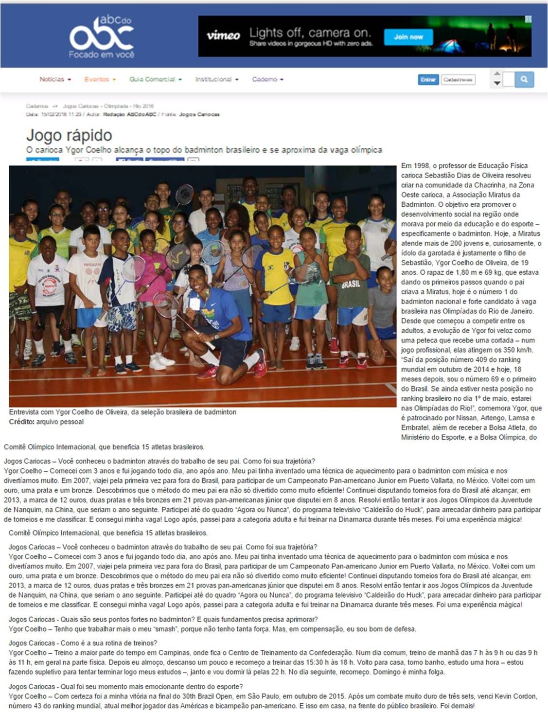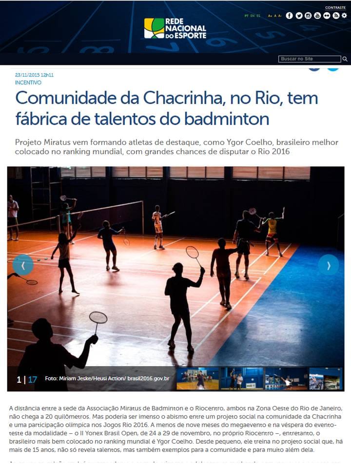 MateriasVeja a seguir matérias publicadas sobre a Associação Miratus e seus atletas. 2016 02 15 Esporte Alternativo... 2016 02 15 Abc do ABC... 2016 02 14 Globo.com 2015 11 23 Rede do Esporte... 2015 11 22 Jornal Extra... 2015 11 06 UOL... 2015 10 25 Blog Romano... 2015 07 13 El Diario (ECU)... 2015 06 16 IG 2015 05 18 ESPM... 2014 11 09 Meia Hora... 2014 11 09 Esporte Essencial...Pagination ← 1 … 16 17 18 19 20 21 →