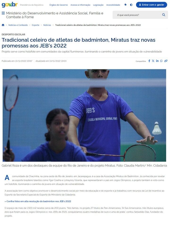 MateriasVeja a seguir matérias publicadas sobre a Associação Miratus e seus atletas. 2022 11 13 Gov.br... 2022 08 22 The New Indian Express (EN)... 2022 08 22 IndoSport (INA)... 2022 08 22 The Japan Times (EN)... 2022 08 16 Your Say (INA)... 2022 06 05 Gauchazh... 2022 02 05 Surto 10 anos... 2021 07 26 Olympics... 2021 07 26 Lance... 2021 07 26 Uol... 2021 07 26 Olimpiada Todo Dia... 2021 07 26 Esporte R7...Pagination ← 1 2 3 4 5 … 21 →