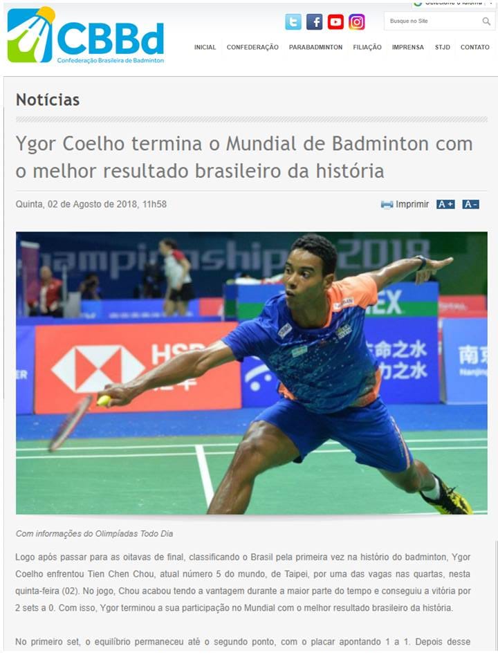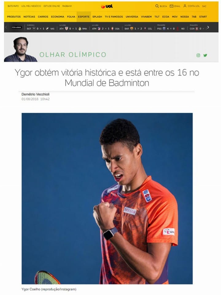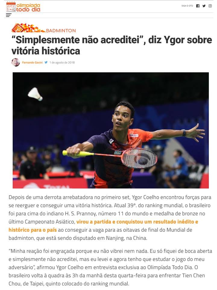 MateriasVeja a seguir matérias publicadas sobre a Associação Miratus e seus atletas. 2018 08 02 Hoje em Dia... 2018 08 02 Gazeta Esportiva... 2018 08 02 CBBd... 2018 08 02 Bola Sport (INA)... 2018 08 01 Rede Nacional Esporte... 2018 08 01 Olimpíada Todo Dia 2... 2018 08 01 Olimpíada Todo Dia 1... 2018 08 01 Globo Esporte... 2018 08 01 Gazeta Esportiva... 2018 08 01 BWF... 2018 08 01 Olhar Olimpico... 2018 07 30 Olimpíada Todo Dia...Pagination ← 1 … 4 5 6 7 8 … 21 →